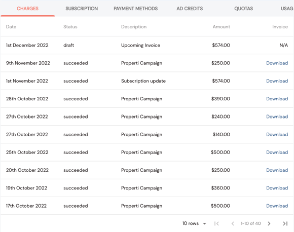 This view allows you to track charges, confirm payment status, and keep copies of invoices for your records.